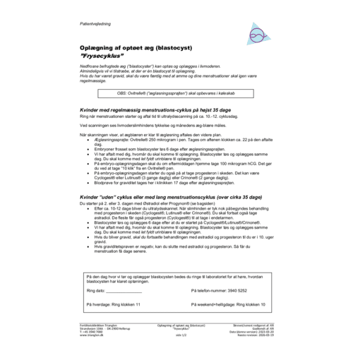 Her finder du information og vejledninger med al nødvendig information om IVF, ICSI, insemination, bestilling af donorsæd og distribution/overflytning til andre klinikker. Klik for at hente patientinformationen, der er relevant for dig.